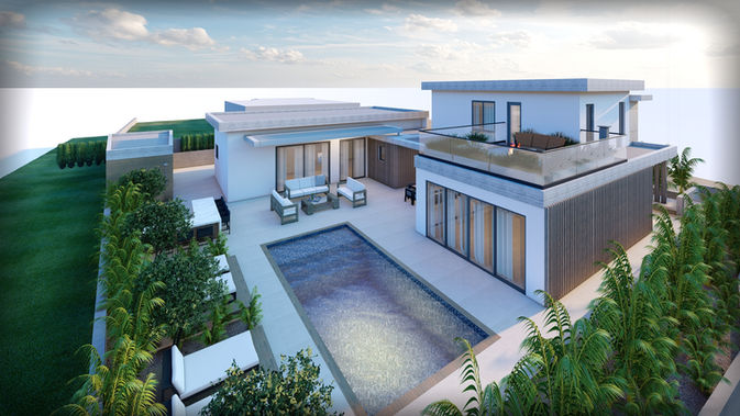 4 bedrooms, maid’s room, playroom and a gym space are the main interior spaces along with an exterior space with a bar, a bbq and a pool.